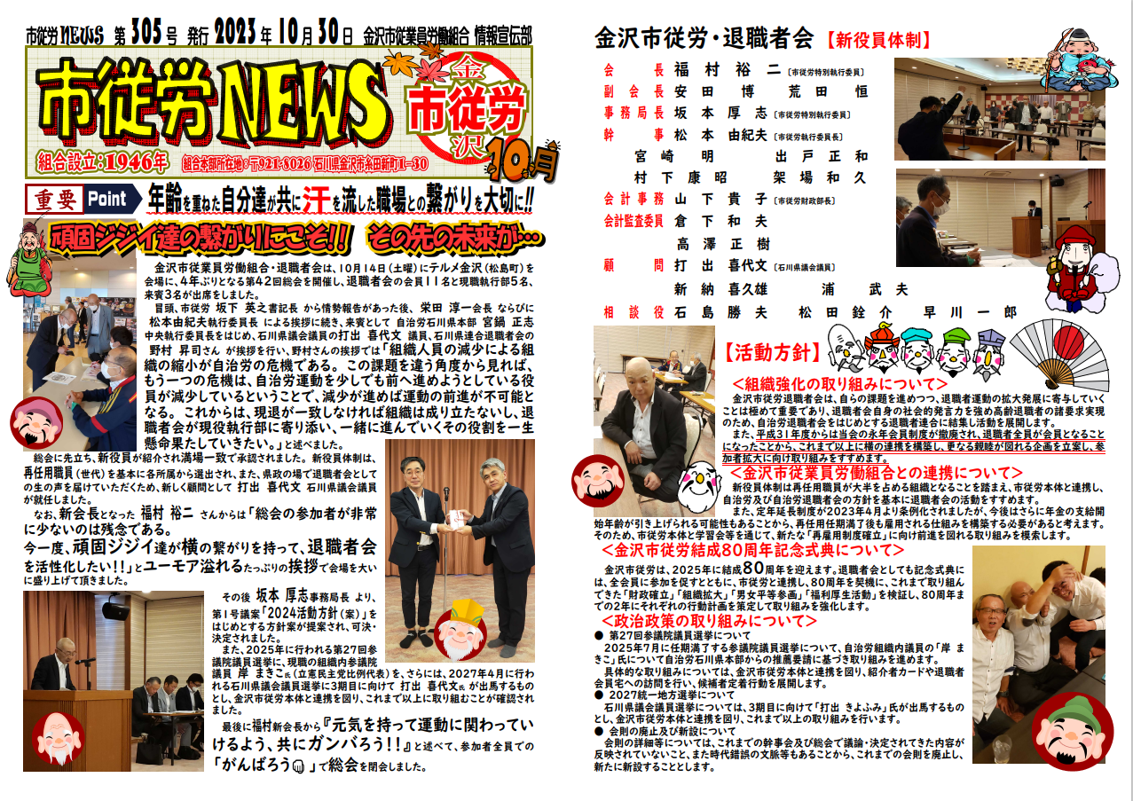 「市従労NEWS第313号」が発刊されました。 あと少しで定期大会ですね!!皆さんお気づきとは思いますが、今回は79回で、来年はついに80回なんです。どのようなかたちになるのか楽しみですね^^ 第313号
