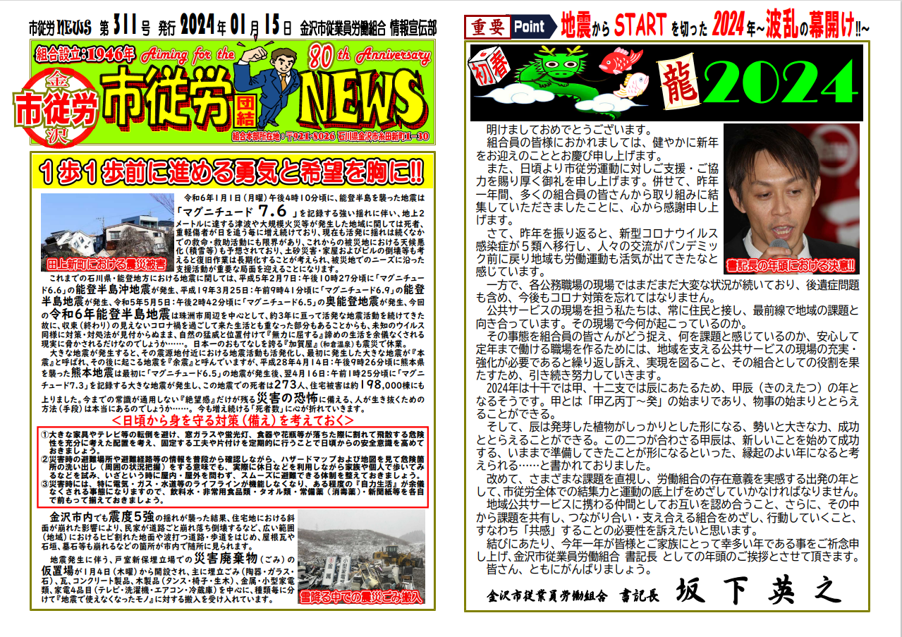 「市従労NEWS第310号」が発刊されました。 みなさんの家は無事ですか??我が家は実家がだいぶ被害をうけ、我が家も僕のコレクションが大変なことになりました。いま使っているPCもコレクションに埋もれてしまい、やっとの発掘作業で使えています。 第310号
